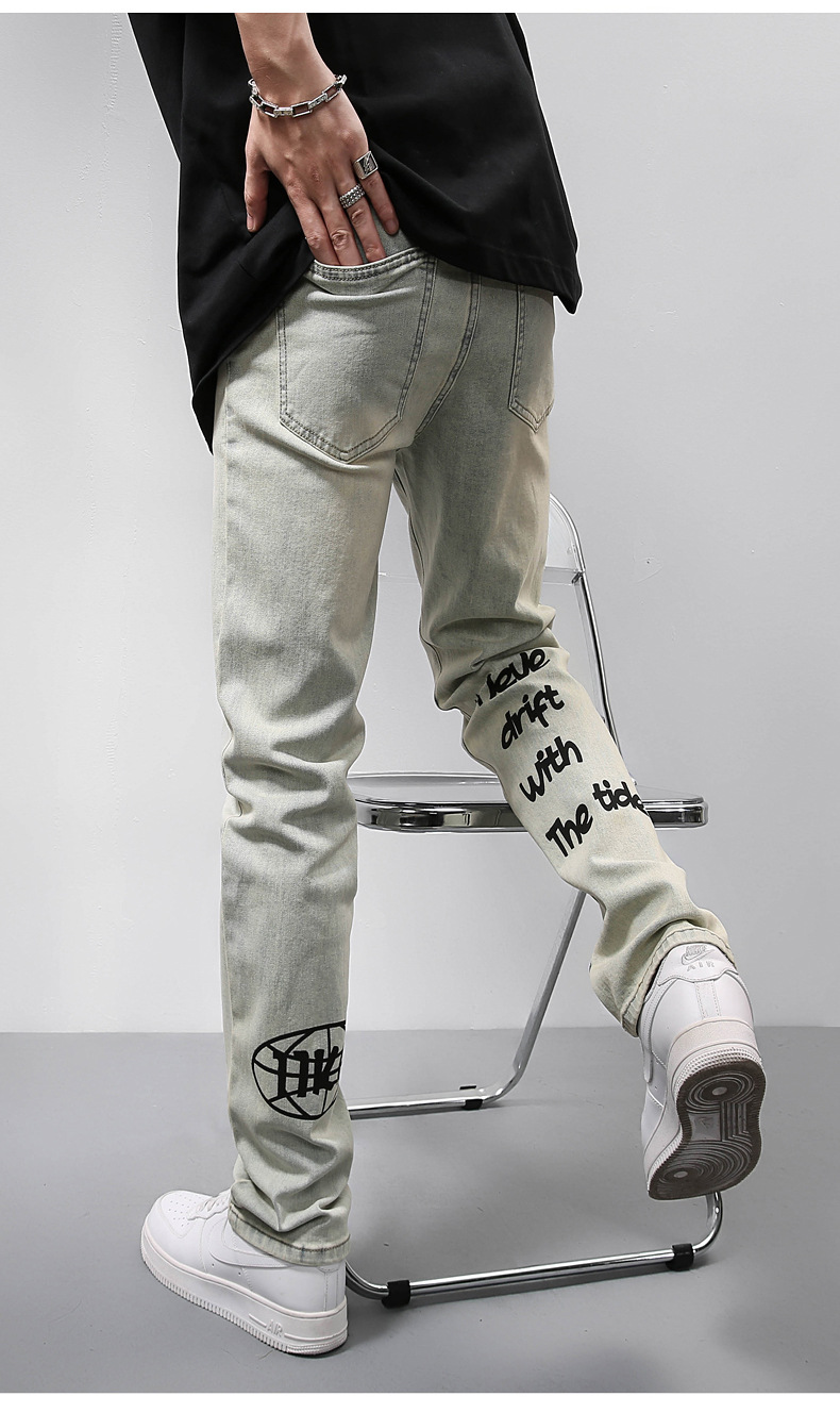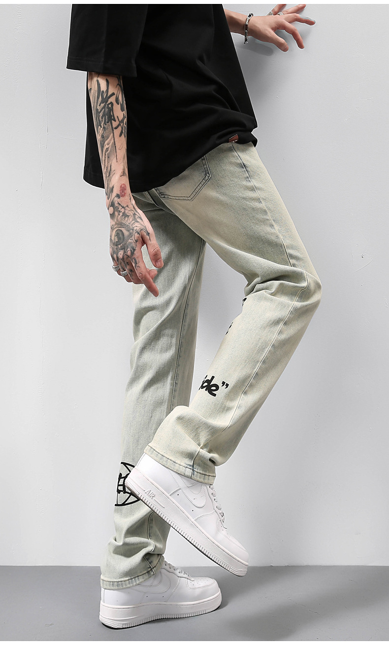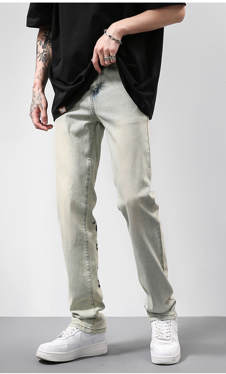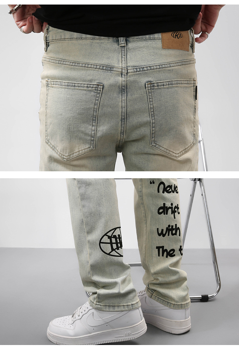 American Vintage Washed Distressed Yellow Mud Dye Letter Print Jeans