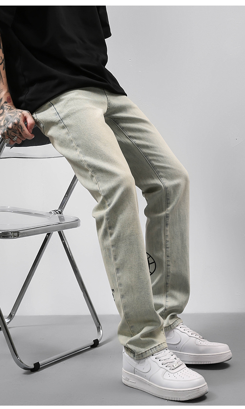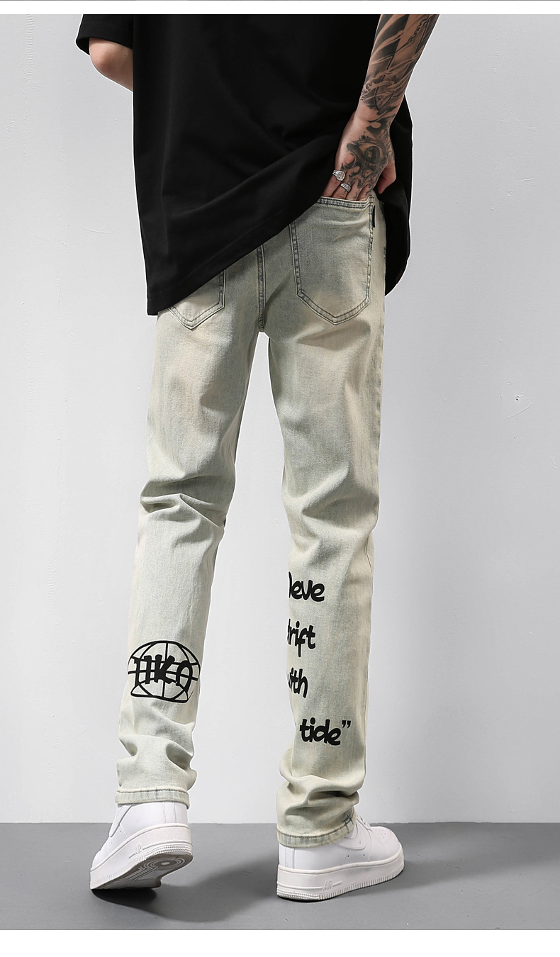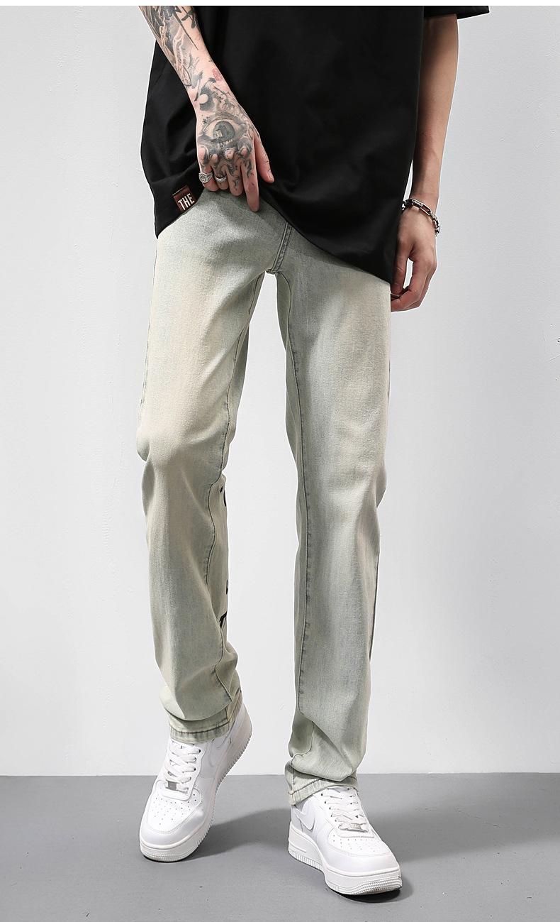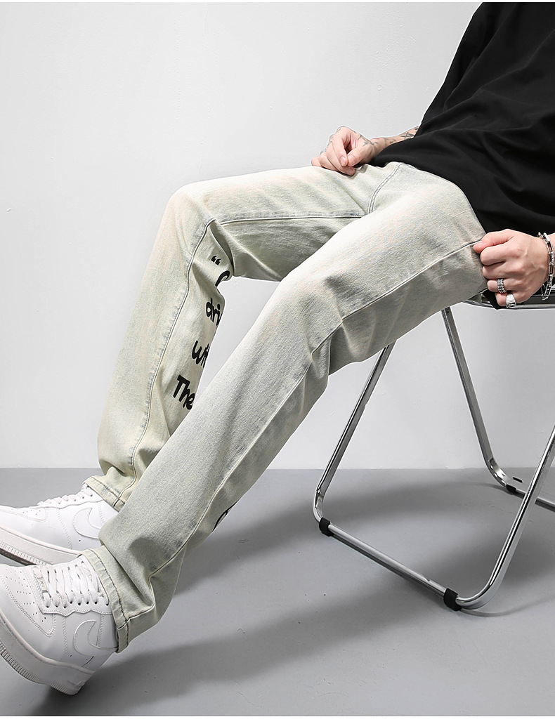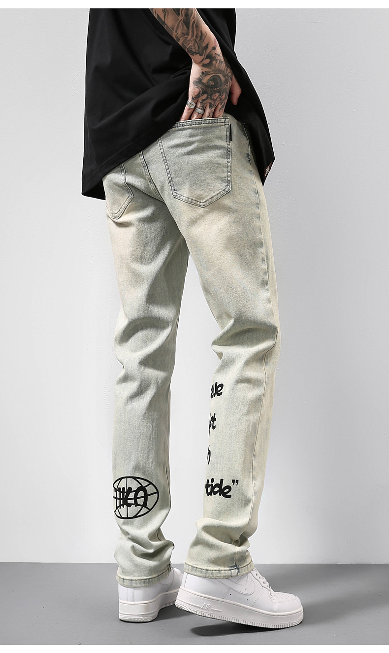 American Vintage Washed Distressed Yellow Mud Dye Letter Print Jeans