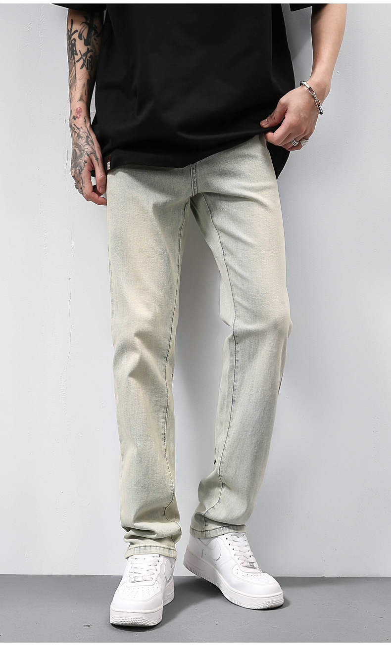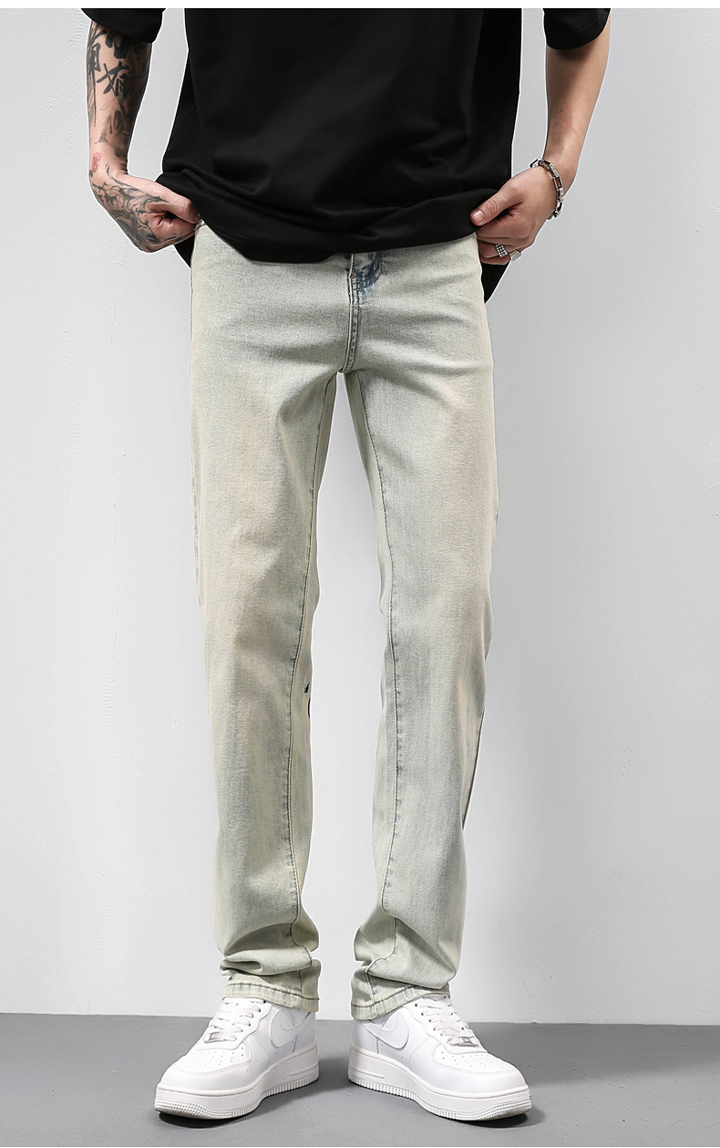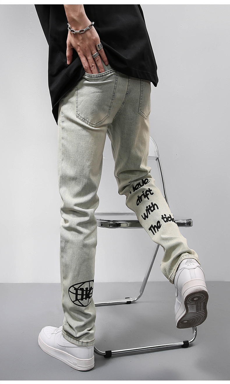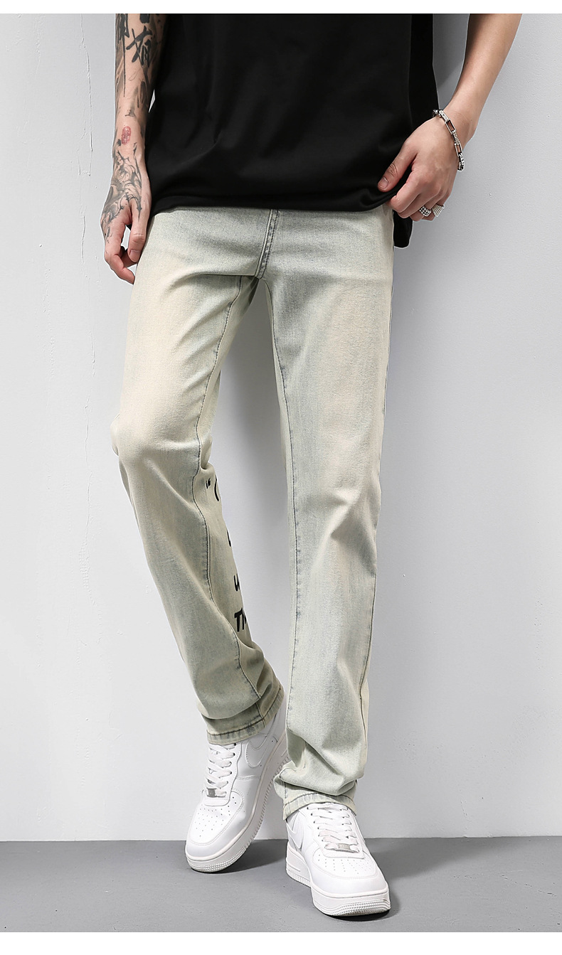 American Vintage Washed Distressed Yellow Mud Dye Letter Print Jeans